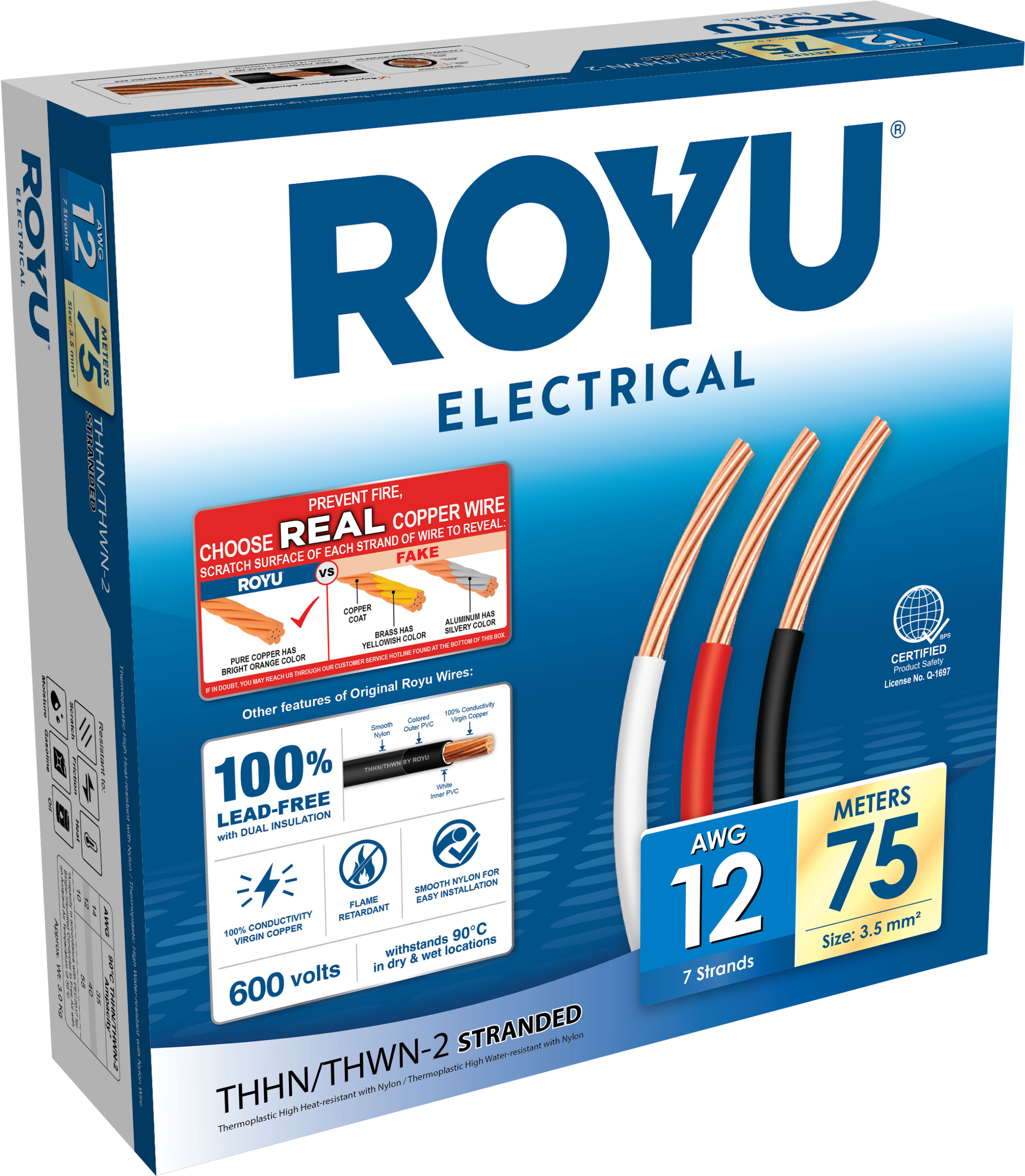 ROYU 3.5mm2 #12 AWG THHN Stranded Red 75M