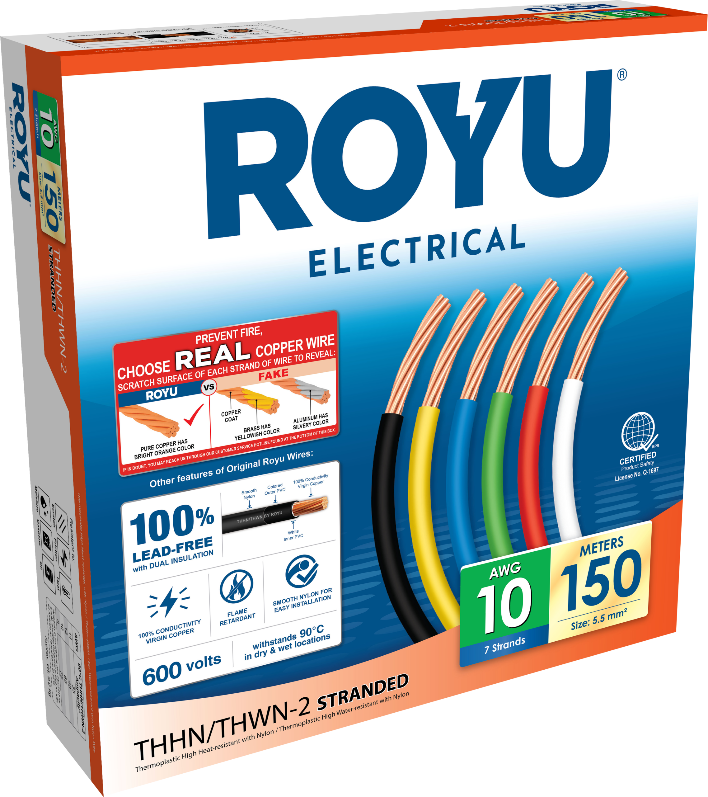 ROYU 5.5mm2 #10 AWG THHN Stranded White 150M